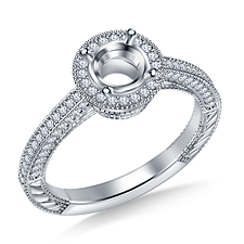 The classic design of this diamond engagement ring gets a fresh interpretation with Asscher cut diamonds enlivening the shank. Modern scoop set prong setting keep the diamonds secure while the center setting is designed to accept the center stone of your choice. Distinctive and beautiful, this engagement ring has an abundance of flash and fire.