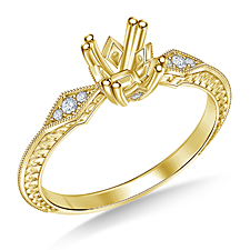 Petite and delicate, this crossover diamond engagement ring has vintage appeal. Prong set diamonds enliven the shank with scintillating brilliance. The center diamond of your choice will complete the look. The twisted shank is graceful and elegant.