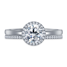 | Petite Diamond Halo Cathedral Engagement Ring in 18K White Gold | |