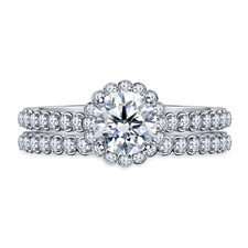| Prong Set Diamond Floral Halo Engagement Ring in Platinum | |