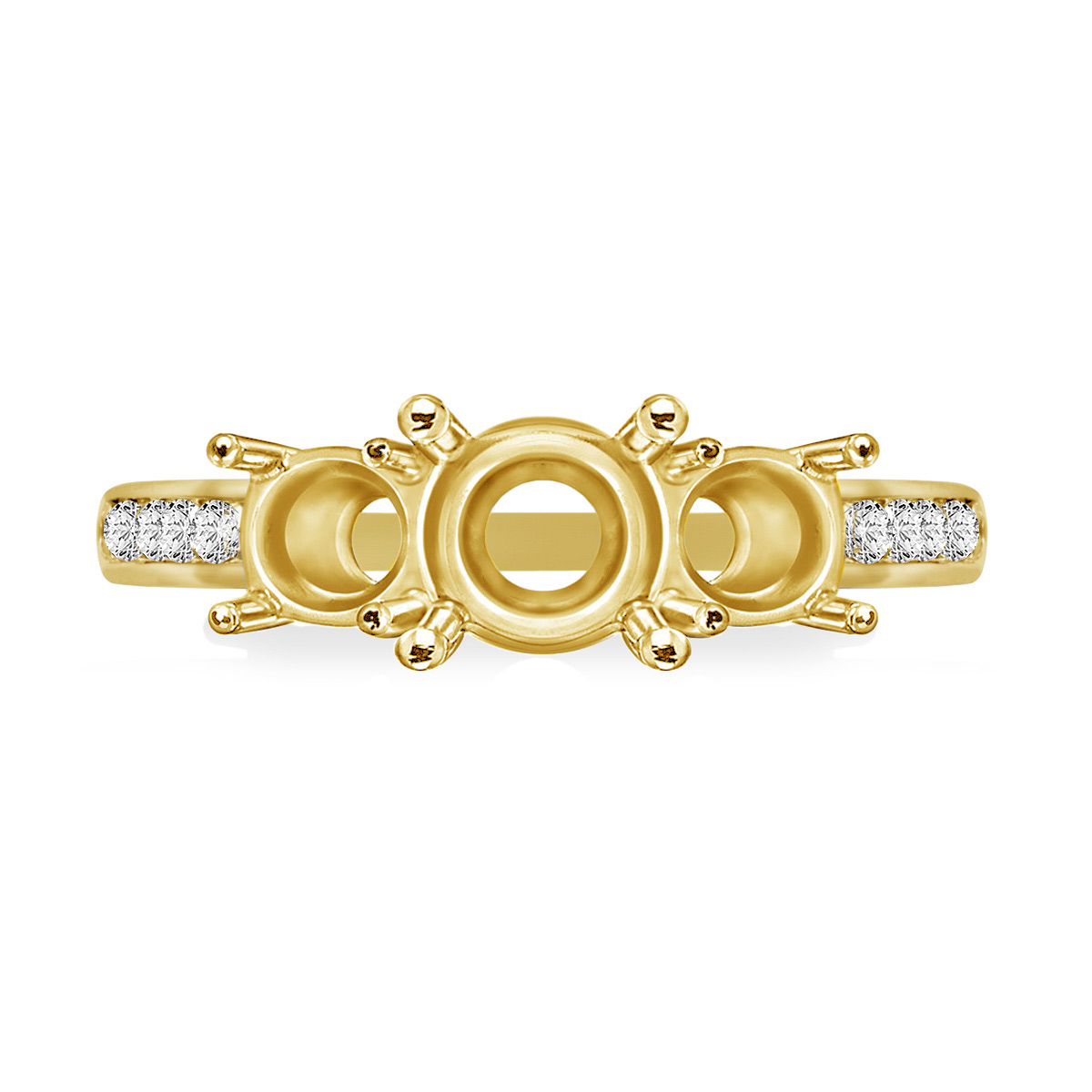 Your dreamy pear shaped stone appears to float above a dazzling halo of prong diamonds in our slender, classic style engagement ring. Expertly crafted in 14K yellow gold, the ring features diamond accents below the setting visible from the side while diamond accents sparkle ¾ of the way around the band. Prongs keep the center stone secure.