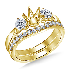 | Three Stone Diamond Prong Set Engagement Ring in 14K Yellow Gold | |