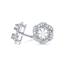 | Floral Halo Solitaire Diamond Engagement Ring with Accents Diamonds in 14K White Gold | |