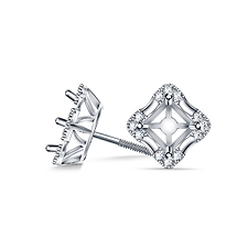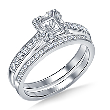 | Round Diamond Center with Square Halo Cathedral Engagement Ring in 14K White Gold | |