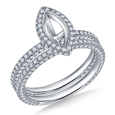 Halo Diamond Engagement Ring with Fancy Marquise Cut Center in 14K White Gold | |