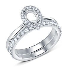 | Fancy Cut Oval Halo Engagement Ring in 14K White Gold | |