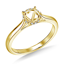 This classic solitaire is created to hold the center diamond of your dreams. Eagle claw prongs gracefully emerge from the subtle curves of the cathedral silhouette while a glittering halo of diamonds delight the eye. Tucked away under the dazzling center stone, the expertly crafted basket design makes this engagement ring a treasure to behold.