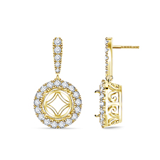 The graceful cathedral silhouette of this diamond halo engagement ring features a split shank design with a delightful diamond basket below the center setting. Pure beauty shines in the fine details such as meticulously set accent diamonds and a secure prong setting to showcase your classic round center stone.