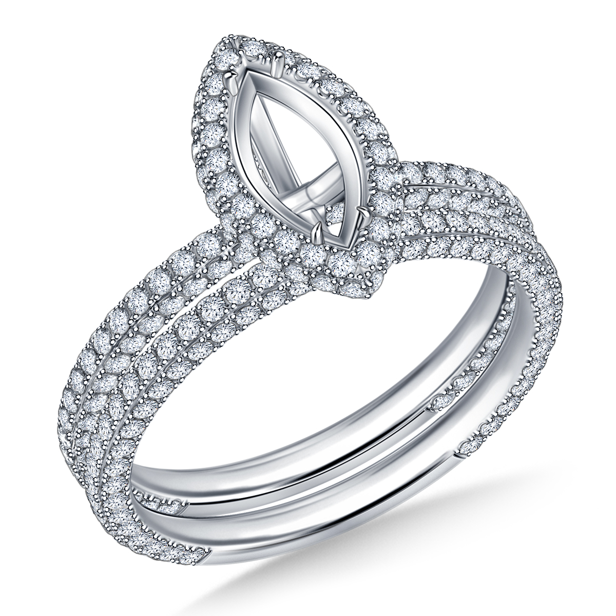 Marquise Center Fancy Halo Diamond Engagement Ring with Pave Matching Band In Platinum | |