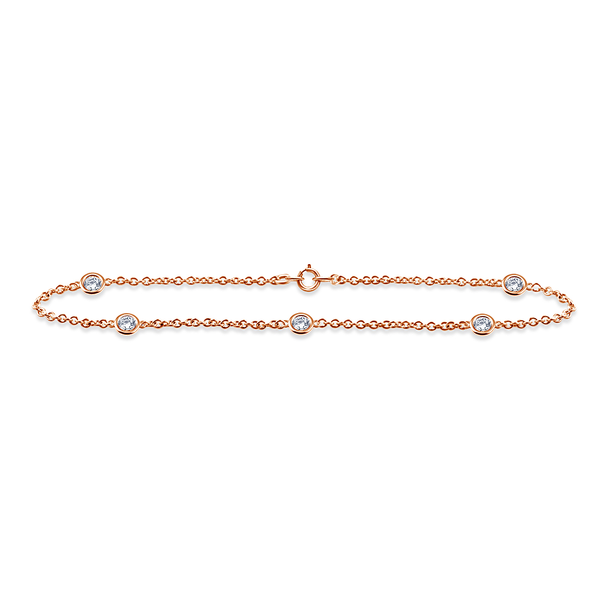 Three brilliant diamonds set in the style of the popular bezel set station motif delight the eye in this expertly crafted bracelet. Brightly polished 14K white gold provides a gleaming backdrop for the sparkling diamonds that glitter along the slender cable chain. A spring ring clasp keeps the bracelet secure.