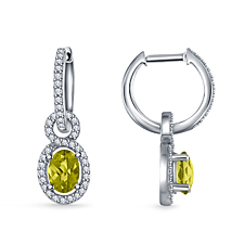 Diamond Halo And Peridot Hoop Earrings With Drops In 14K White Gold