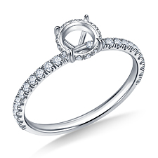 This diamond encrusted prong set wedding band is specially designed to stack against your engagement ring. The gentle curve allows the wedding band to nest snugly against our diamond engagement ring.