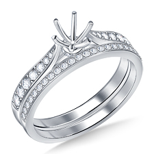 With stones set very closely together, this diamond wedding band brings a delightful sparkle to your wedding set. Pave setting is among the most intricate and creates an alluring look with very little metal showing in between the stones. Simple and elegant, this ring creates visual harmony.