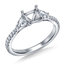 A round brilliant center diamond sparkles with effervescent fire in this delicate and feminine engagement ring. Four split prongs add a classic touch to the center diamond while a dazzling line of pave set diamonds enlivens the band. Expertly crafted in 14K white gold, this ring has irresistible charm.